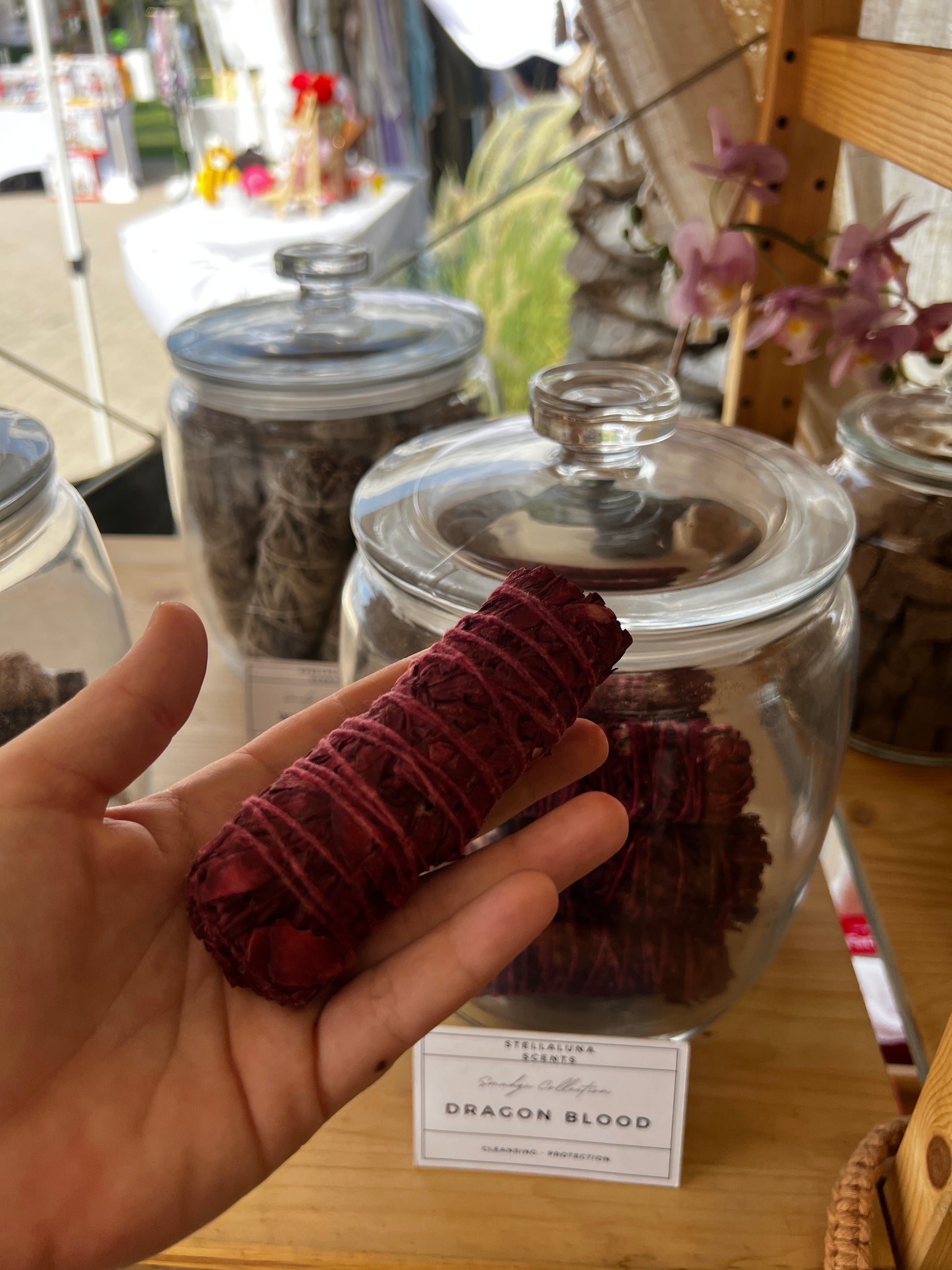 Ignite your intentions with this Dragon’s Blood smudge stick. Known for its powerful protective and cleansing properties, Dragon’s Blood is ideal for ritual work, boosting energy, and creating a positive atmosphere. Light the tip and let the rich, aromatic smoke fill your space, clearing negativity and promoting focus and vitality. Hand-rolled and sustainably harvested to ensure premium quality and potency.